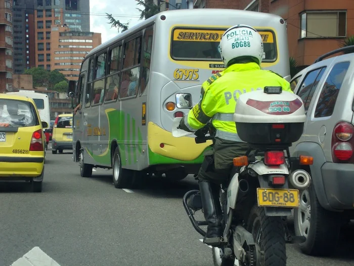 We follow a police officer weaving through Bogota traffic on his motorcycle | ©Rose Tibayan